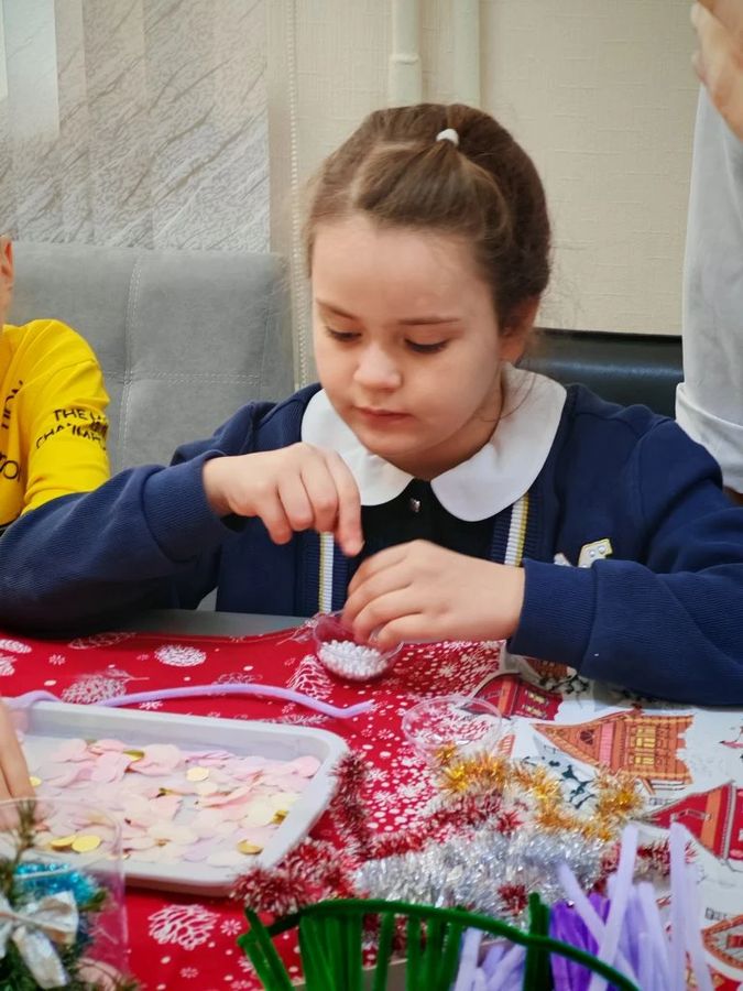 Ребята с увлечением создавали свои собственные, неповторимые новогодние шары. Каждый шарик, украшенный с любовью и фантазией, стал маленьким произведением искусства, которое будет напоминать о сегодняшнем дне и приносить радость в дом.