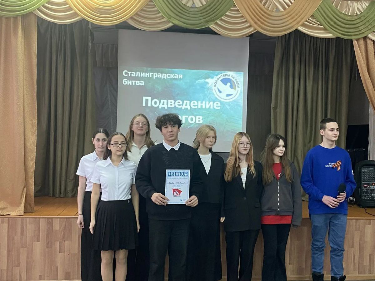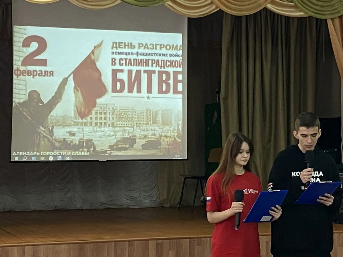 В рамках мероприятия ребята просмотрели документальный видеофильм о Сталинградской битве и приняли участие в тематической викторине. Участники игры узнали о важных датах в истории Сталинградской битвы, о великих героях и их подвигах.