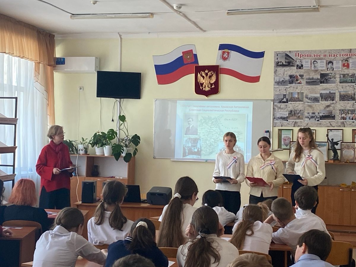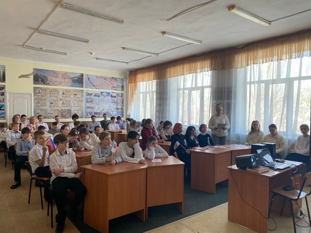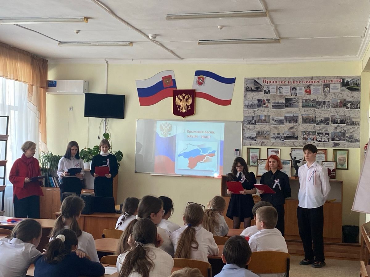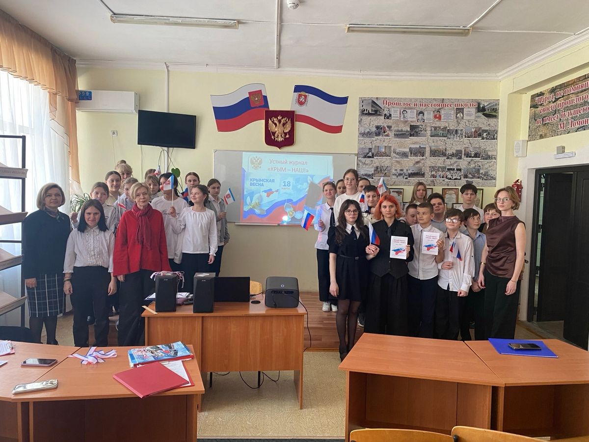 В рамках декады социально-гуманитарных наук в школьном Музее боевой славы прошло тематическое мероприятие в форме устного журнала «Крым — наш», посвящённое 12‑летию воссоединения Крыма с Россией.