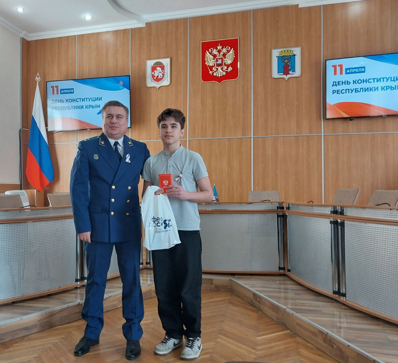 Паспорта вручал прокурор города Феодосии, старший советник юстиции Штрыков Роман Александрович. Получив паспорта, ребята произнесли торжественную клятву о готовности быть достойными гражданами Российской Федерации.