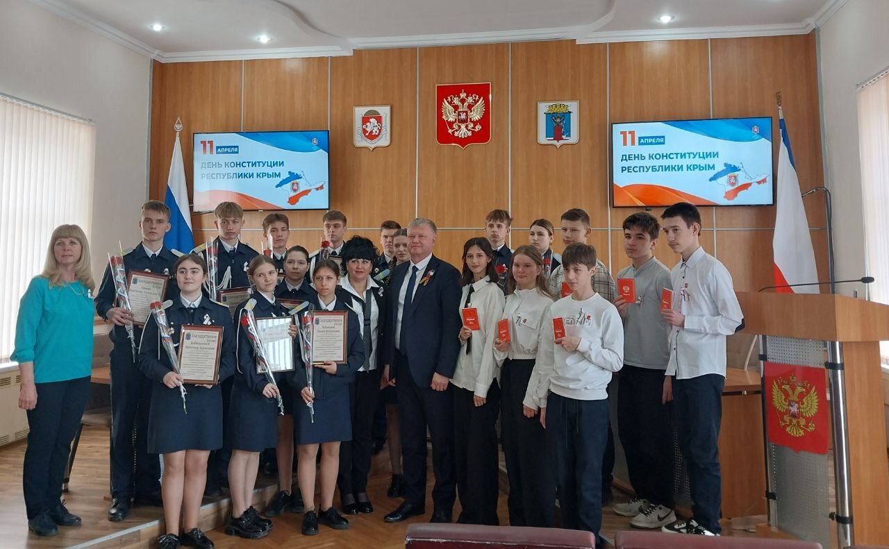 В День Конституции Республики Крым и в преддверии Дня Космонавтики были вручены паспорта граждан Российской Федерации участникам программы Движения Первых «Мы - граждане России», среди которых и учащийся 8-го класса нашей школы-интерната Ткачев Александр.