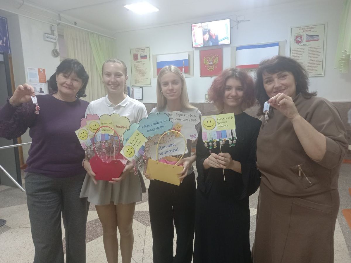 Активисты Движения Первых выступили организаторами выставки «Загляните в семейный альбом», на которую предоставлены фотографии педагогов школы вместе со своими детьми. В предпраздничный день на пороге школы учителей встречали ребята с корзинками пожеланий и сладких конфет. Они говорили: «Возьмите конфетку, начните день с хорошего настроения!».