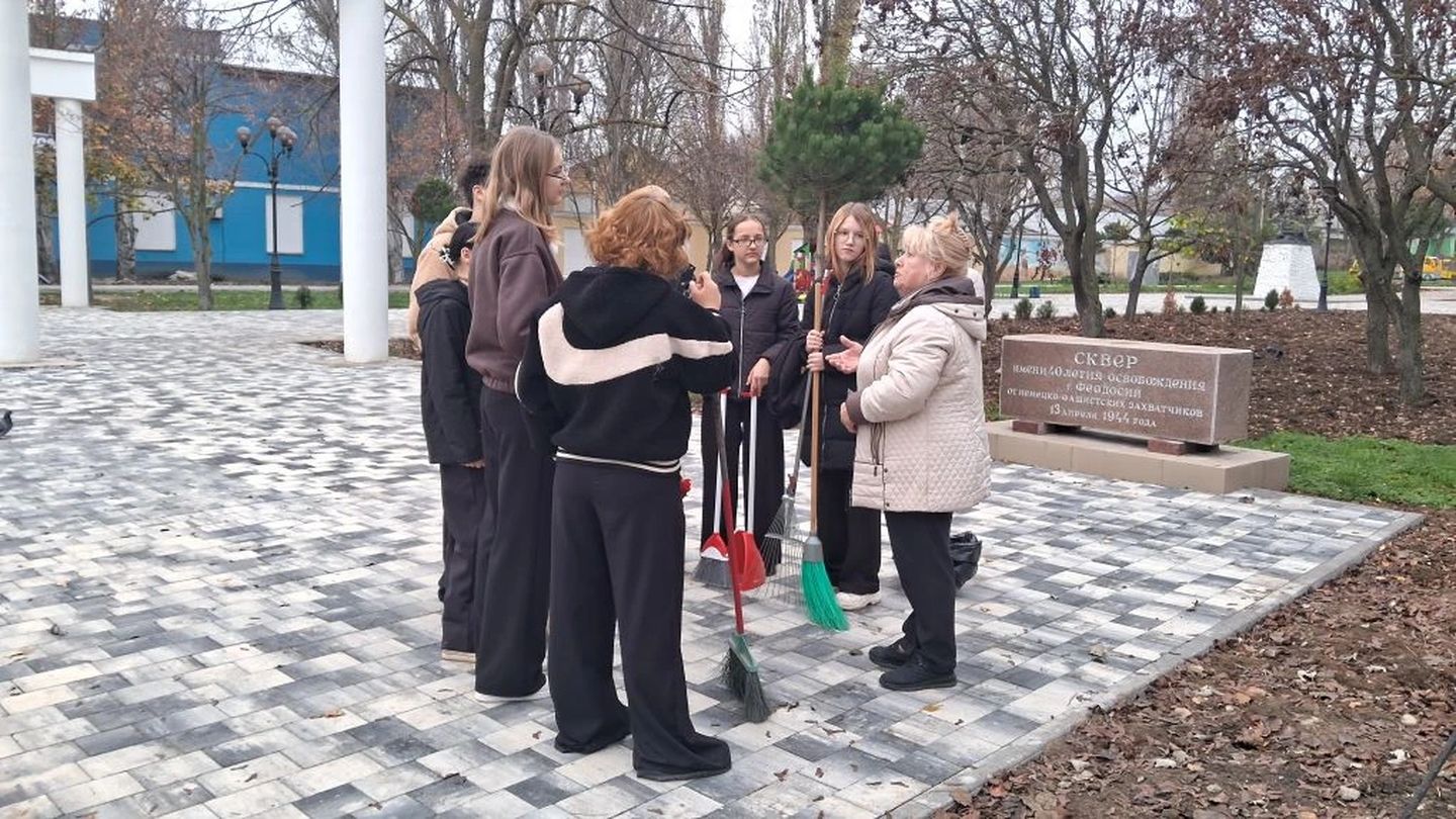 Активисты первичного отделения и учащиеся 8 класса ГБОУ РК «Феодосийская санаторная школа-интернат» в Сквере им. 40-летия освобождения Феодосии от немецко-фашистских захватчиков осуществили уборку мусора, удаление листвы, очистили памятные надписи на мемориале и памятном знаке «Зенитное орудие», который вернулся в сквер имени 40-летия освобождения города Феодосии.