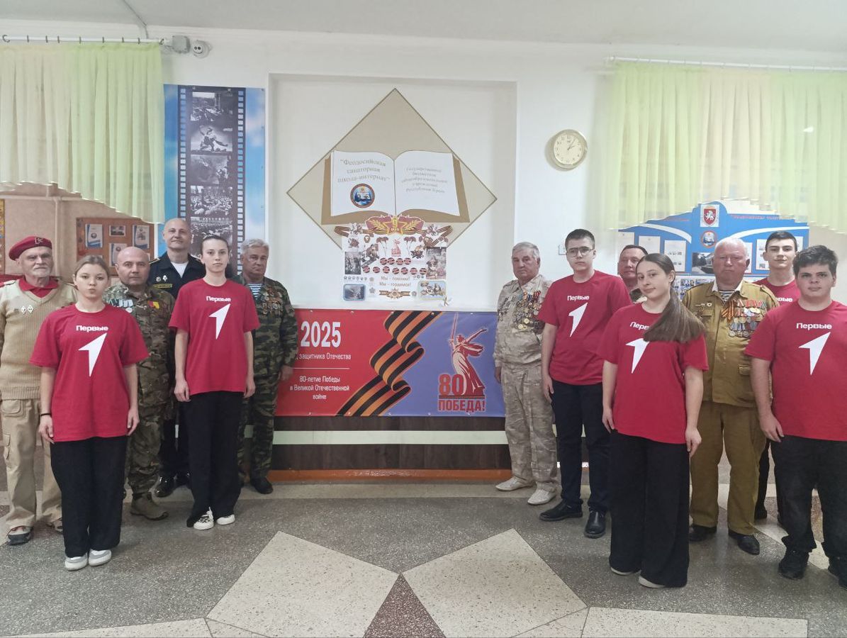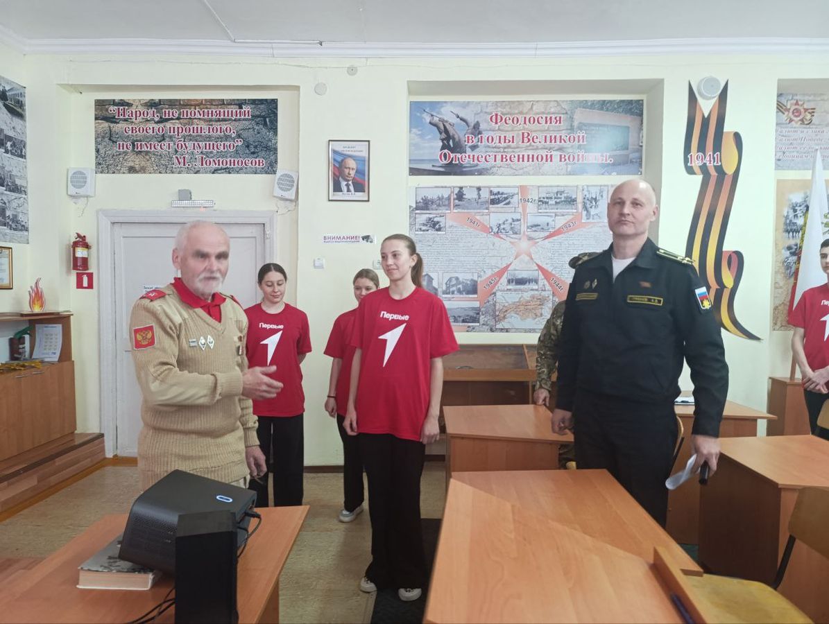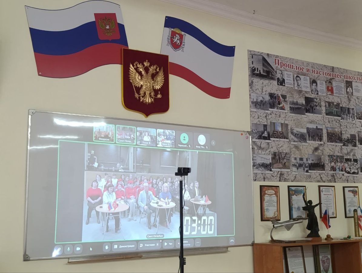 От Феодосийской организации «Ветераны Афганистана и других локальных войн» в телемосте приняли участие: Ермуракий Леонид Ефимович – ветеран боевых действий в Афганистане, а ныне – председатель Феодосийской городской организации «Ветераны Афганистана и других локальных войн», представитель Фонда 6-ой роты в г. Феодосии, а также Долбнев Алексей Иванович и Ковалев Леонид Александрович – ветераны Афганистана, члены городской организации «Ветераны Афганистана и других локальных войн». Аудиторию представляли лидеры первичного отделения РДДМ «Движение Первых» и школьного ученического совета.