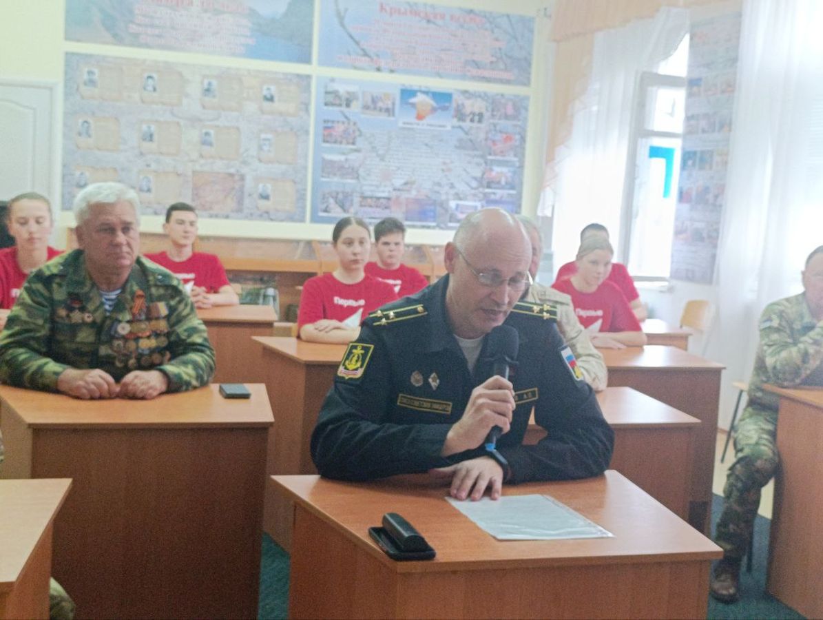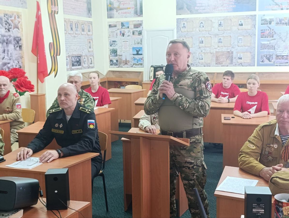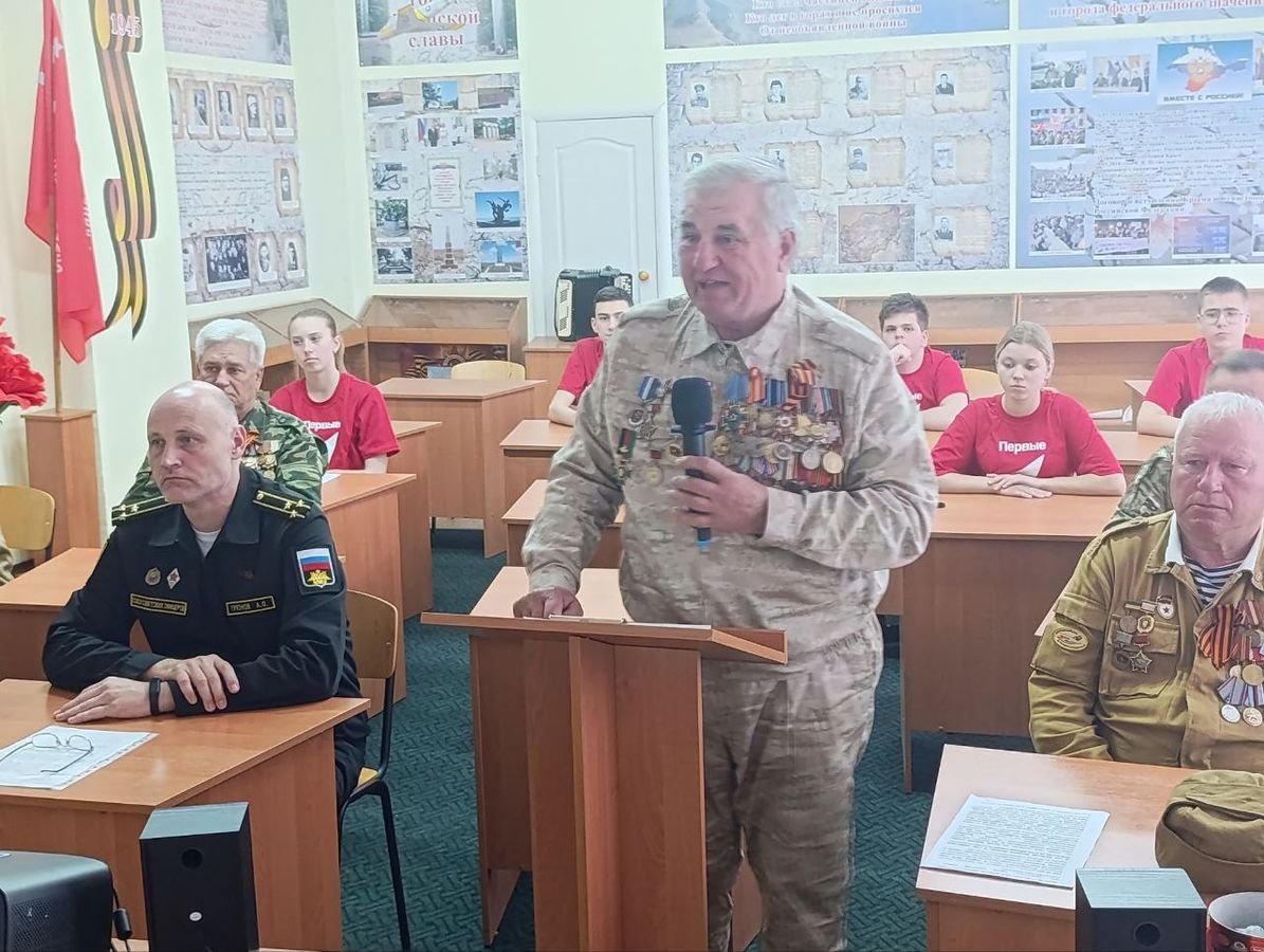 От Феодосийской организации «Ветераны Афганистана и других локальных войн» в телемосте приняли участие: Ермуракий Леонид Ефимович – ветеран боевых действий в Афганистане, а ныне – председатель Феодосийской городской организации «Ветераны Афганистана и других локальных войн», представитель Фонда 6-ой роты в г. Феодосии, а также Долбнев Алексей Иванович и Ковалев Леонид Александрович – ветераны Афганистана, члены городской организации «Ветераны Афганистана и других локальных войн». Аудиторию представляли лидеры первичного отделения РДДМ «Движение Первых» и школьного ученического совета.