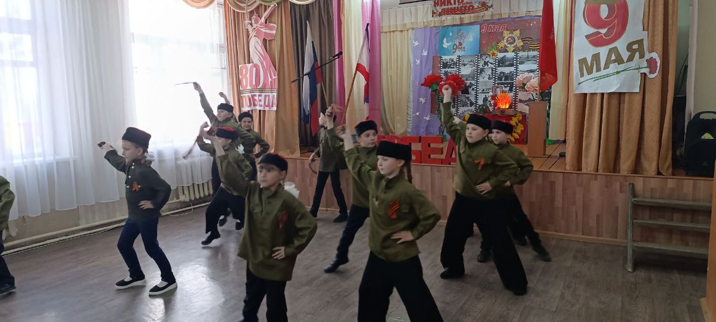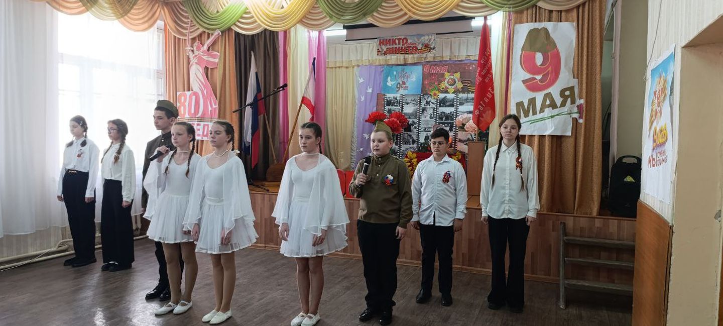 Концерт проходил в актовом зале школы, украшенном в соответствии с круглой датой Победы. Пропустив через детские души весь трагизм войны и радость одержанной победы, юные артисты школы пытались вложить в выступления свое понимание великого праздника: проникновенное чтение поэзий, зажигательные танцы, мелодичное или многоголосое пение не оставило равнодушными зрителей и гостей праздника. В торжестве приняли участие родители школы – кадровые военные, участники СВО, профессиональные исполнители.