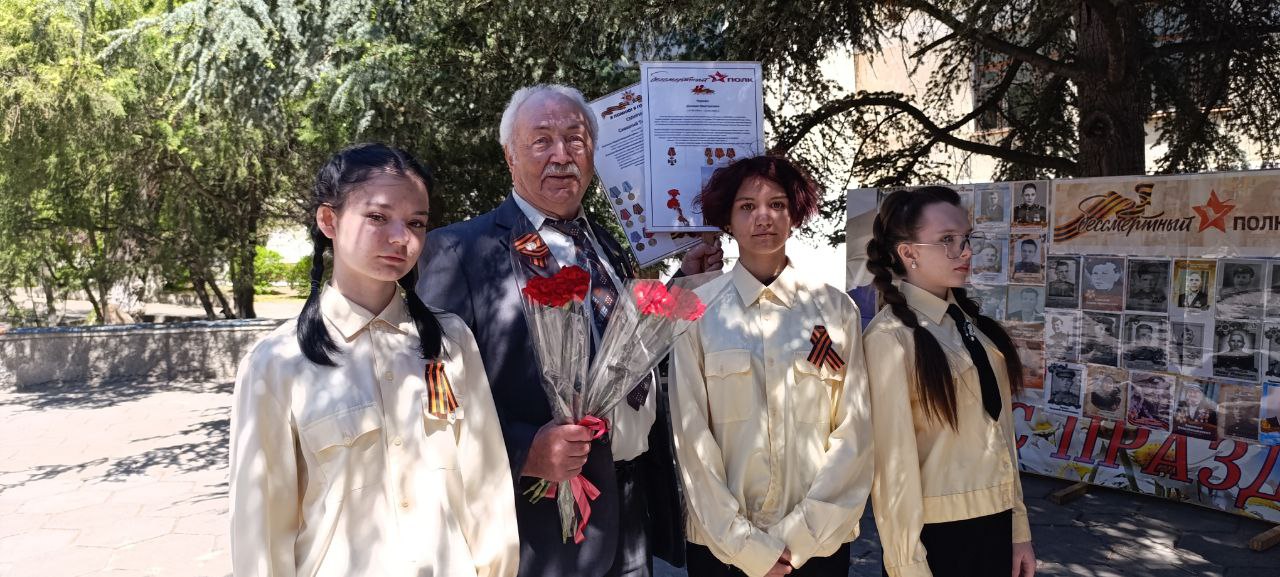 Очень душевно был встречен особенный гость - Смирнов Михаил Савватеевич, участник боевых действий в Афганистане, командир отдельного противотанкового артдивизиона, начальник артиллерии 12 гвардейского мотострелкового полка 5-й гвардейской мотострелковой дивизии. Он пришел с портретом своего внука Чернюха Даниила, героически погибшего при исполнении воинского долга в СВО, выпускника нашей школы-интерната.