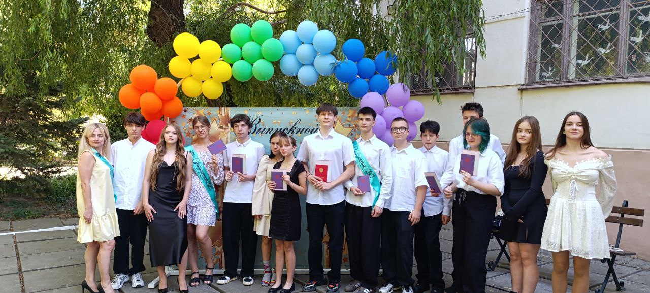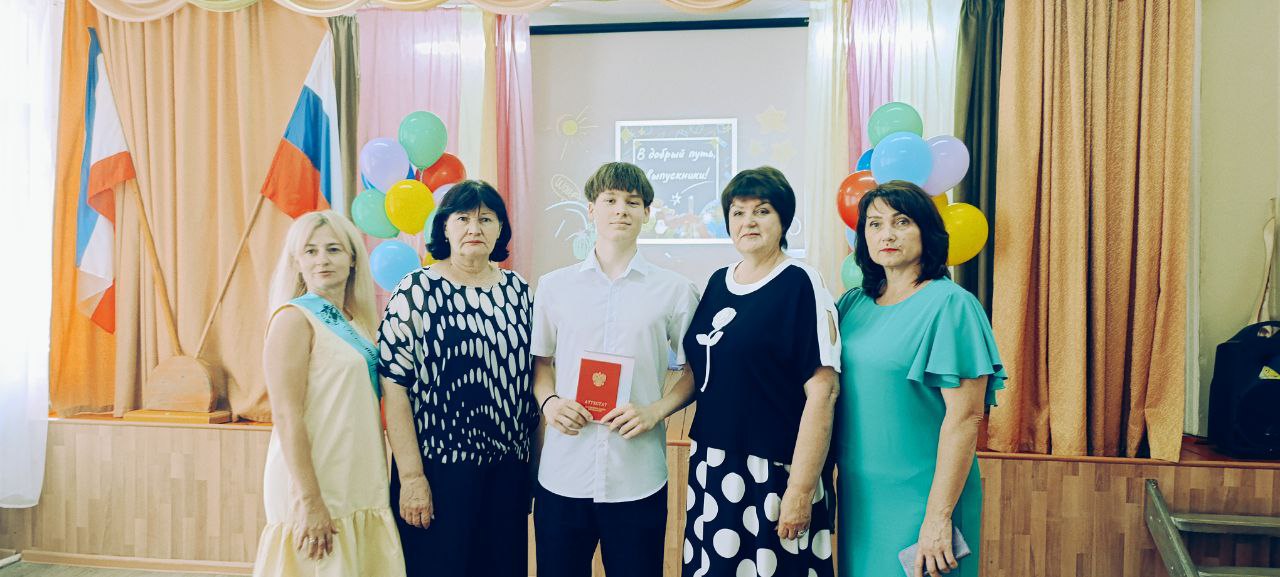Гости, педагоги, родители встретили выпускников бурными аплодисментами. Торжественно исполнены гимны Российской Федерации и Республики Крым. Первыми аттестаты получили лучшие учащиеся. Директор школы Калинина И.В. и замдиректора по УР Смокотина Е.Н. аттестат о среднем общем образовании с отличием и медаль «За особые успехи в учении» 1 степени (она же всем известная и не первая в нашей школе - золотая медаль) вручили выпускнице 11 класса, стипендиату Госсовета Республики Крым Михайловой Елизавете. На должной высоте были и наши девятиклассники. Аттестат об основном общем образовании с отличием (красный аттестат) был выдан выпускнику 9-го класса Кабышеву Артему, получившему итоговые отметки «отлично» по всем предметам.