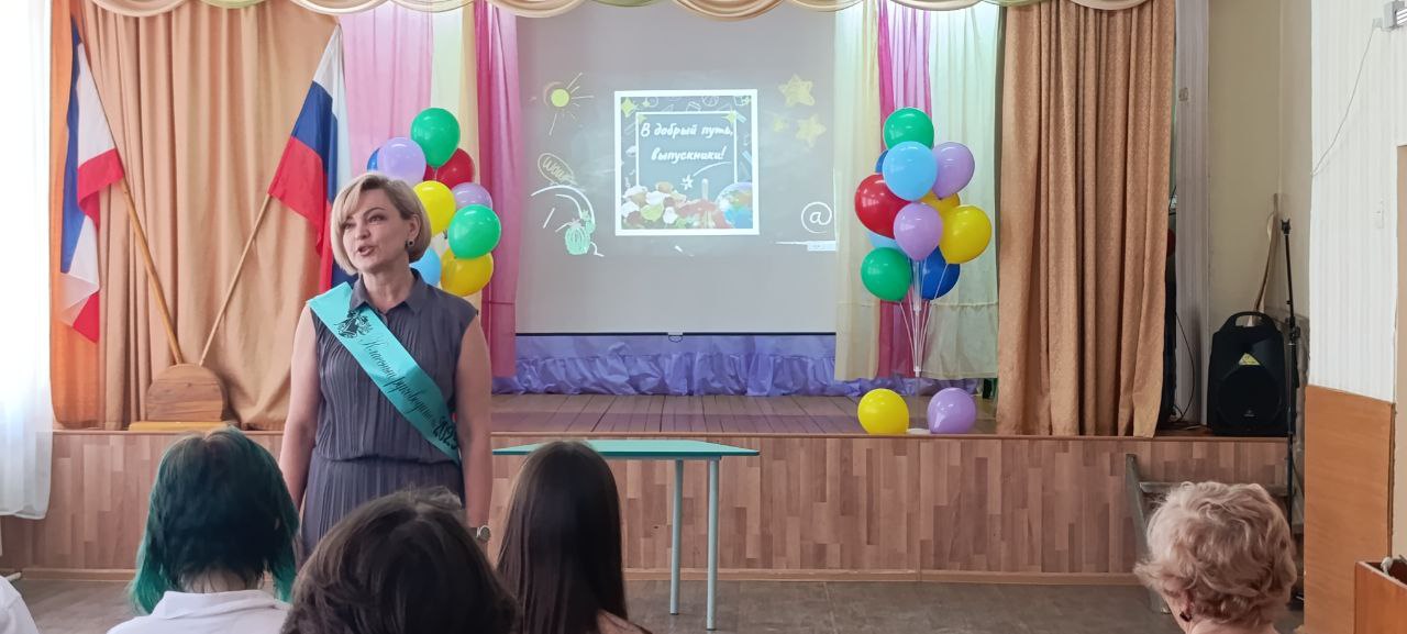 С напутственным словом к ребятам обратились классные руководители Копченко И.М. и Купцова В.П., взволнованные родители выпускников. А со словами благодарности за учительский труд и прекрасные результаты выступили одиннадцатиклассница Михайлова Елизавета и девятиклассница Мотренко Анастасия – покидающий школу Президент Школьной Демократической Республики «Планета – МЫ!».