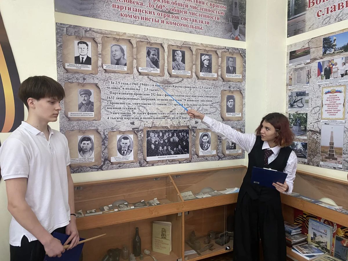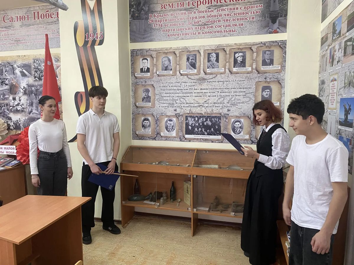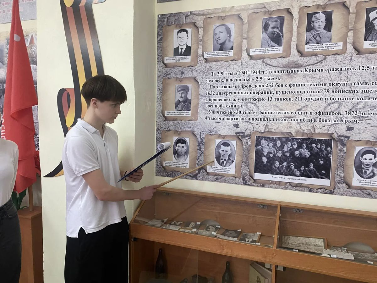 В рамках всероссийской акции «История Героев», посвященная Дню Героев Отечества в школьном Музее боевой славы для учащихся 5, 10, 11 классов прошел Музейный урок «Герои малой родины моей» посвященный партизанам и подпольщикам г. Феодосии.