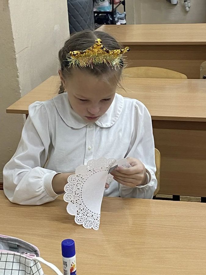 Ребята приняли участие в играх: «Наряди ёлочку», «Нарисуй снеговика», «Весёлые снежки». После конкурсной программы был проведён мастер-класс по изготовлению ангелочков в технике «декупаж». Ребята с удовольствием выполняли творческую работу, от Святого Николая получили сладкие сюрпризы и отправились пить чай со сладостями.