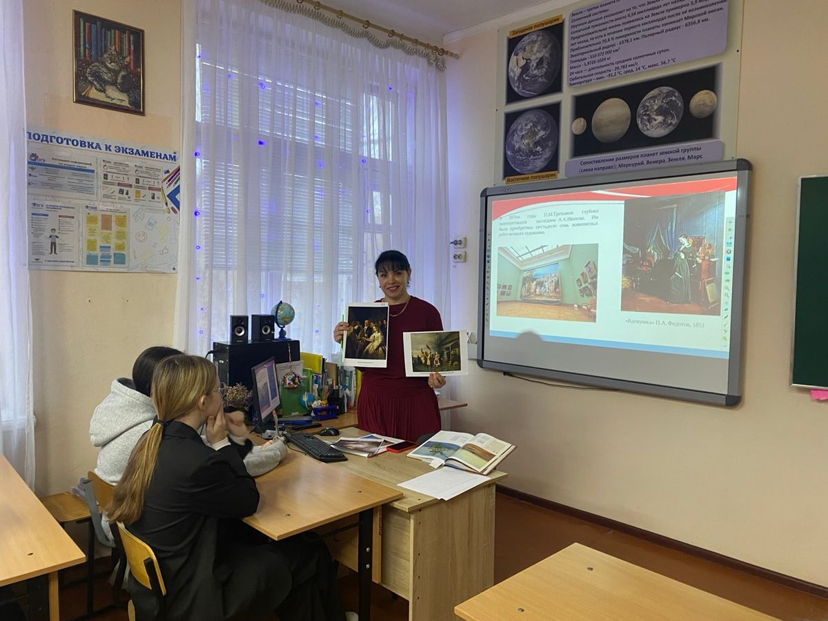 Для старшеклассников Феодосийской санаторной школы-интерната заведующая отделом обслуживания Центральной городской библиотеки им. А. Грина Наталья Архипова провела час искусства «Тайны Третьяковской галереи», приуроченный к 170-летию со дня основания музея.