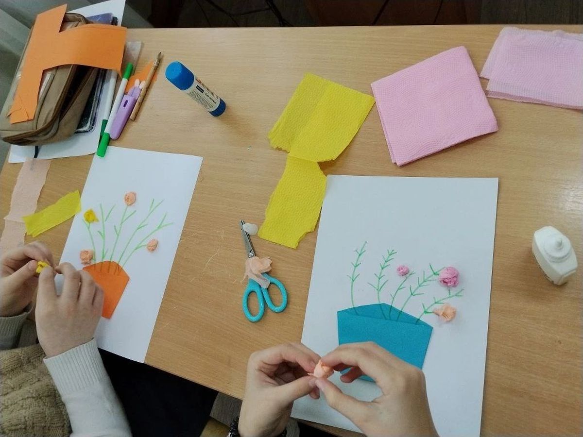 Накануне праздника в классе прошёл мастер-класс по изготовлению праздничных поделок. Сколько фантазии и старания вложили дети в свои работы! В ход пошли цветная бумага, блёстки и, конечно, детские улыбки. Класс напоминал художественную мастерскую: здесь «рождались» необычные букеты, праздничные открытки и милые сувениры, которые обязательно займут почётное место дома.