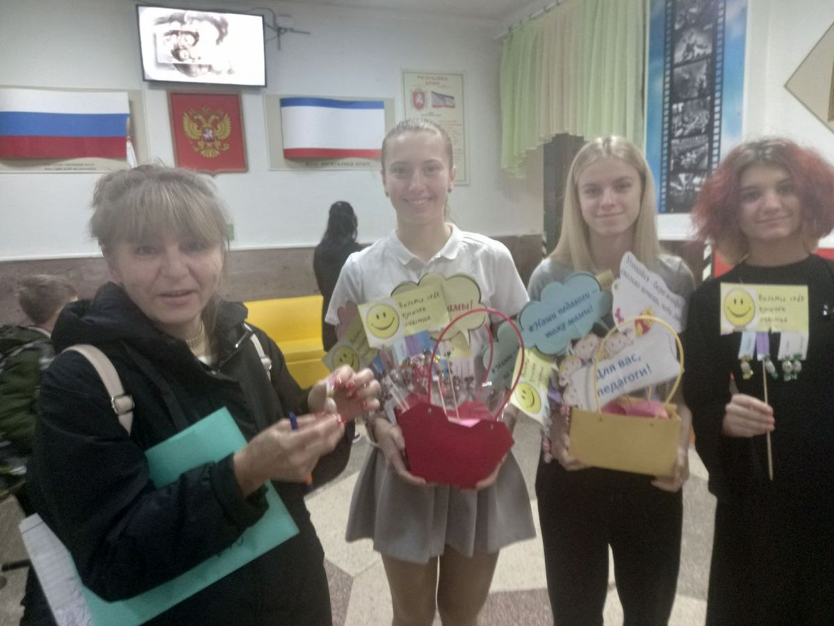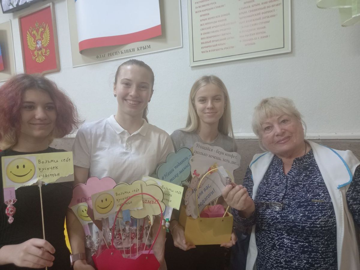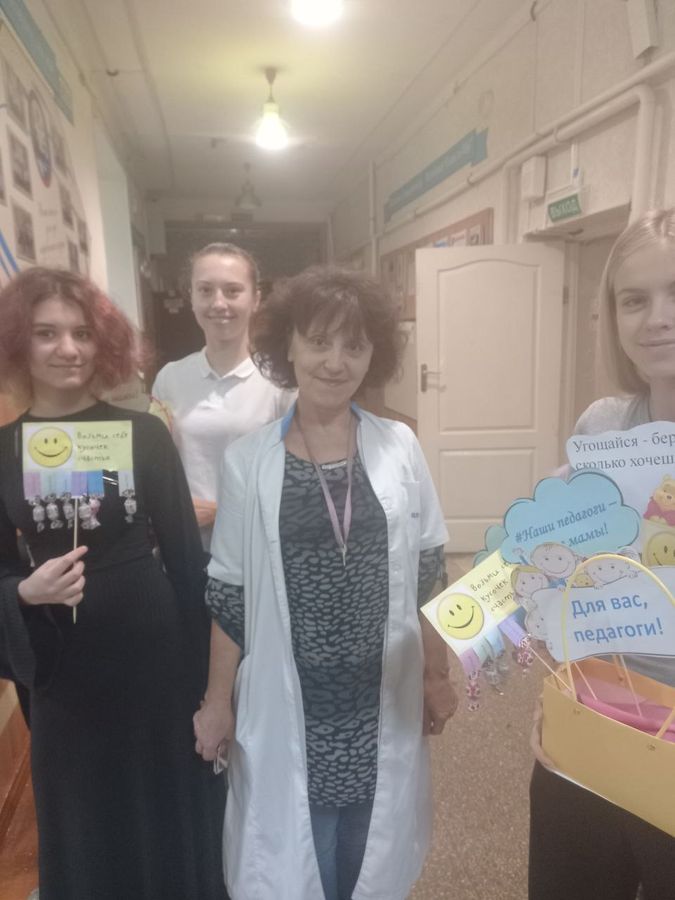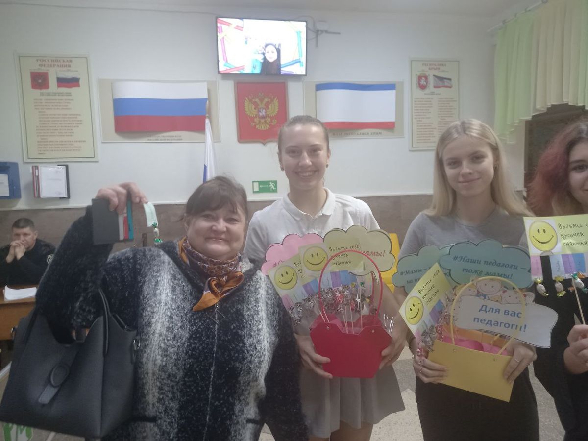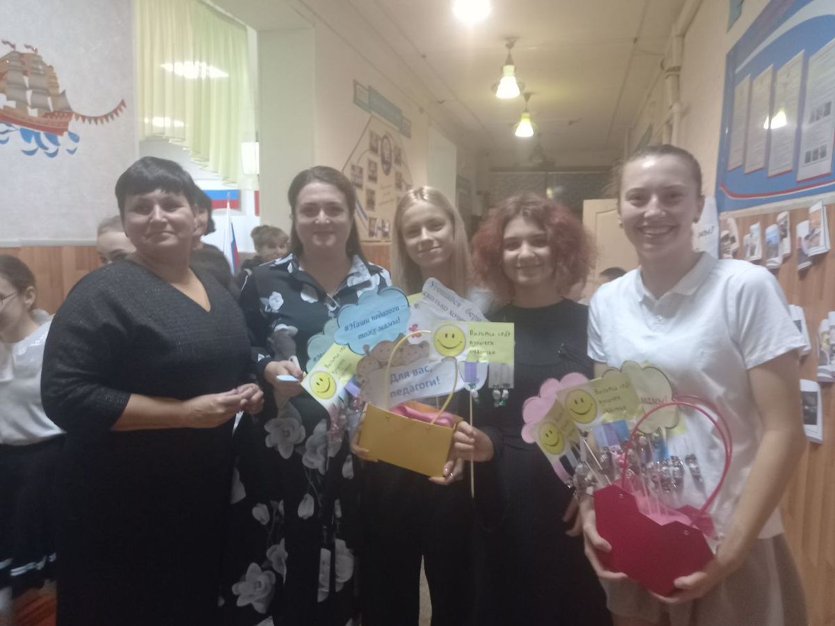 Активисты Движения Первых выступили организаторами выставки «Загляните в семейный альбом», на которую предоставлены фотографии педагогов школы вместе со своими детьми. В предпраздничный день на пороге школы учителей встречали ребята с корзинками пожеланий и сладких конфет. Они говорили: «Возьмите конфетку, начните день с хорошего настроения!».