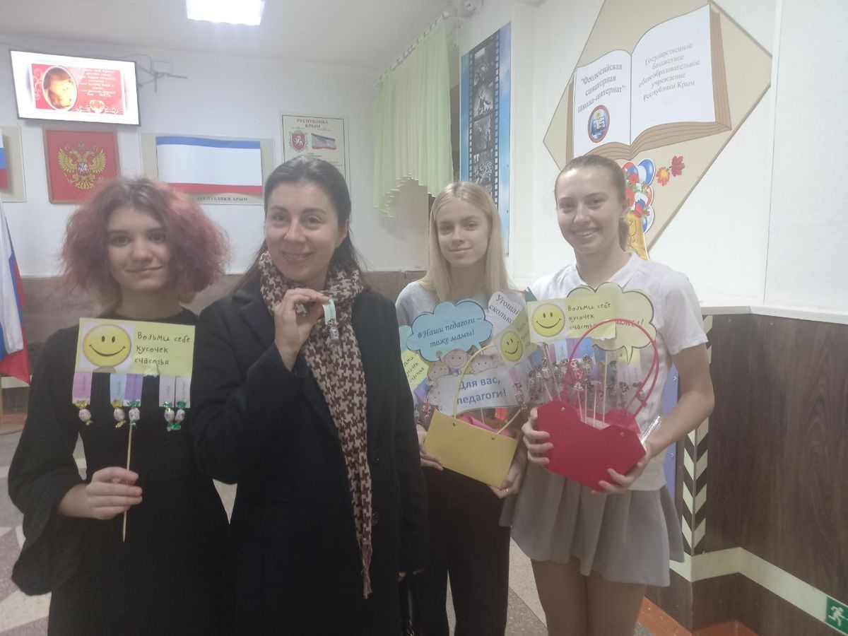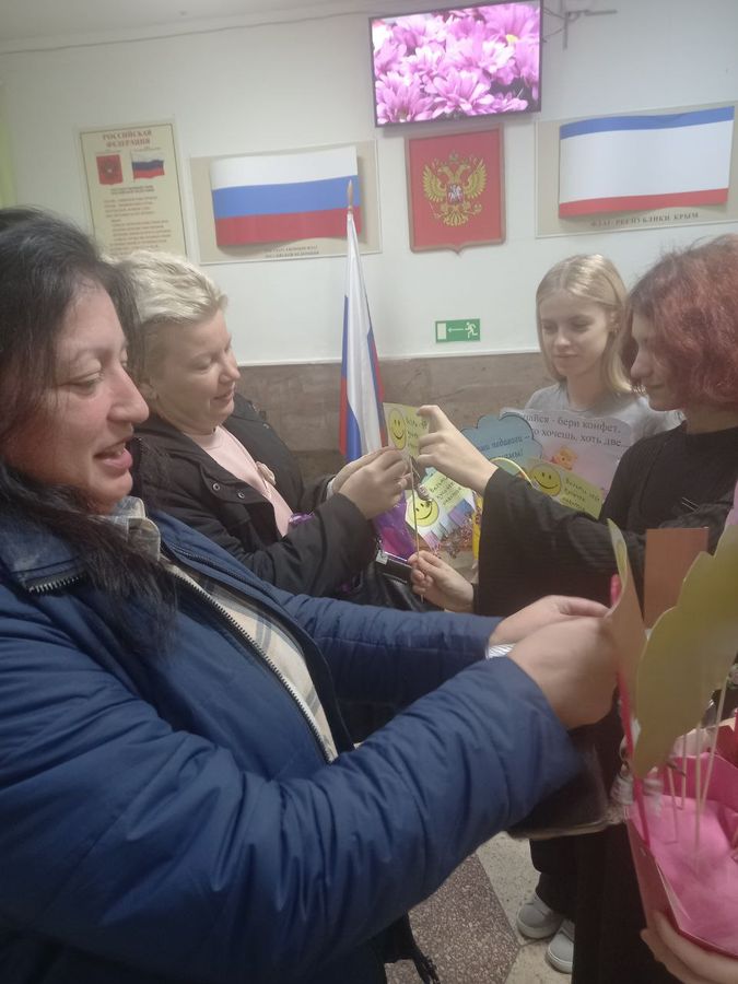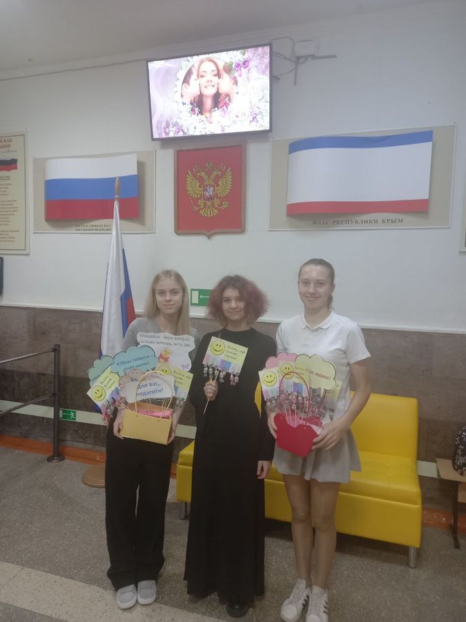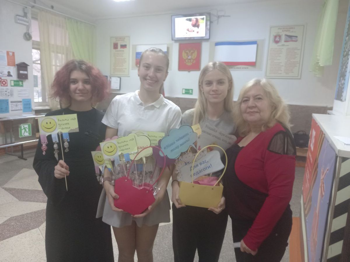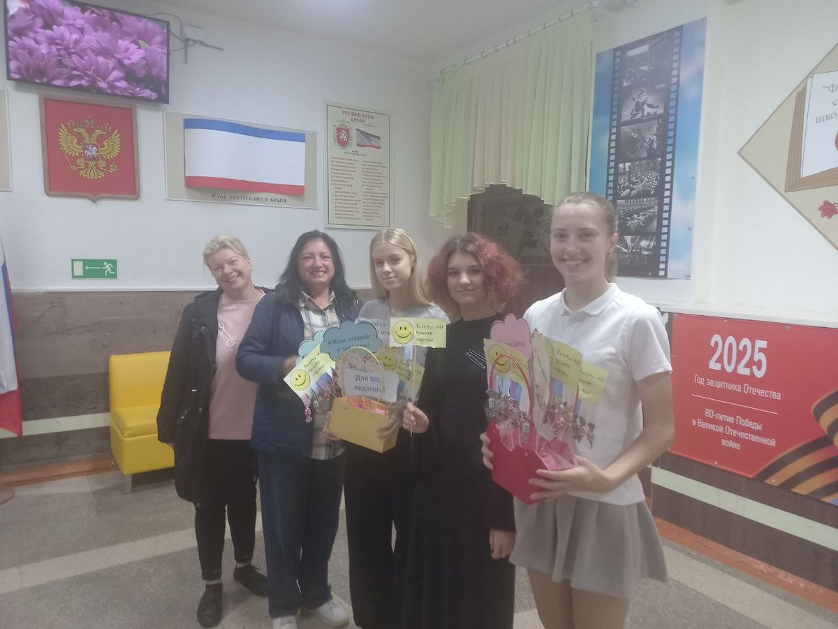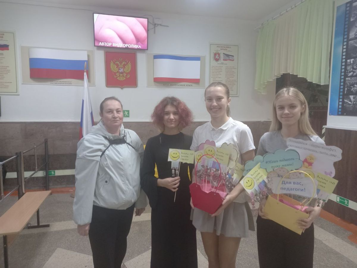 Активисты Движения Первых выступили организаторами выставки «Загляните в семейный альбом», на которую предоставлены фотографии педагогов школы вместе со своими детьми. В предпраздничный день на пороге школы учителей встречали ребята с корзинками пожеланий и сладких конфет. Они говорили: «Возьмите конфетку, начните день с хорошего настроения!».