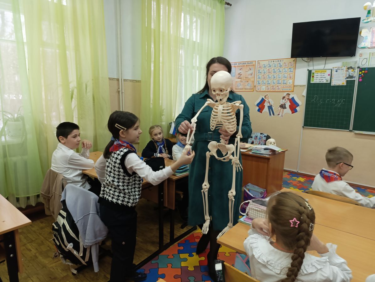 В рамках Всероссийской акции «Наука для каждого» ученики 2 класса вместе с учителем Хаурмаджи А.В. совершили увлекательное путешествие в мир анатомии. На этот раз ребята перевоплотились в юных ученых, исследующих строение человеческого тела.