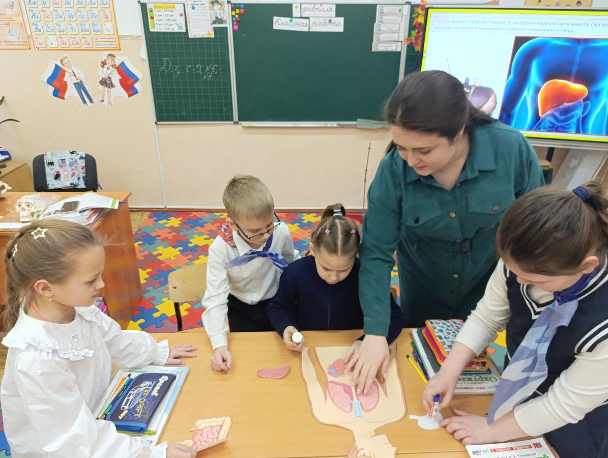 Чтобы закрепить полученные знания, школьники объединились в команды с азартом размещали внутренние органы на специальном макете. Этот урок стал для ребят настоящим открытием, полным новых знаний и ярких впечатлений.