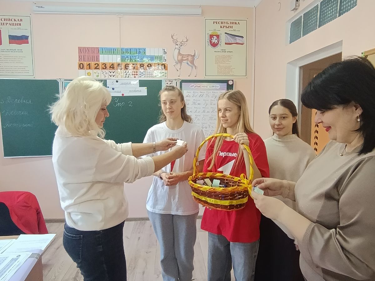 В преддверии 8 марта, активисты Движения Первых и Орлята России окружили вниманием всех работниц школы.
