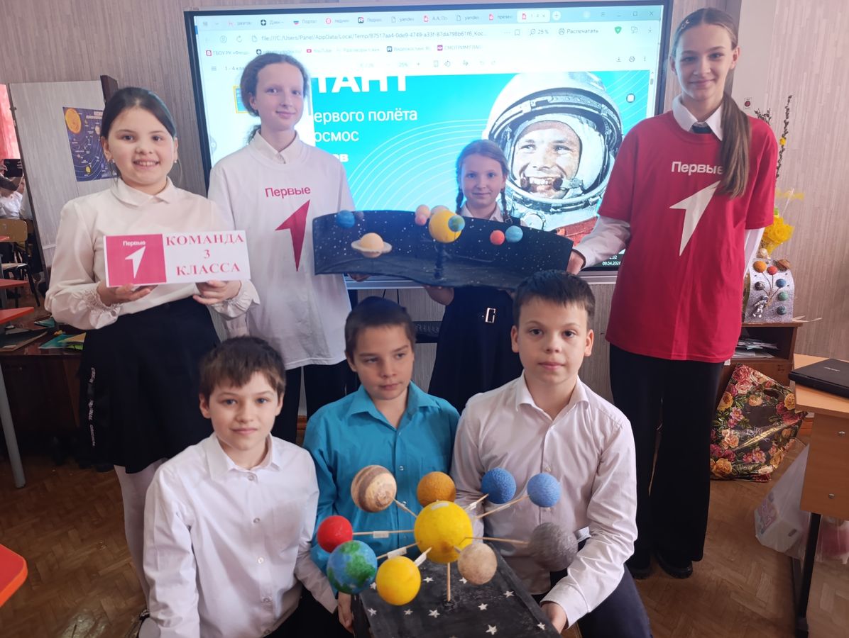 Сегодня наша школа погрузилась в атмосферу космических открытий! Среди учеников 2-4 и 7-9 классов прошла увлекательная викторина, посвященная Дню космонавтики, под названием «Время первых: 65 лет триумфа».