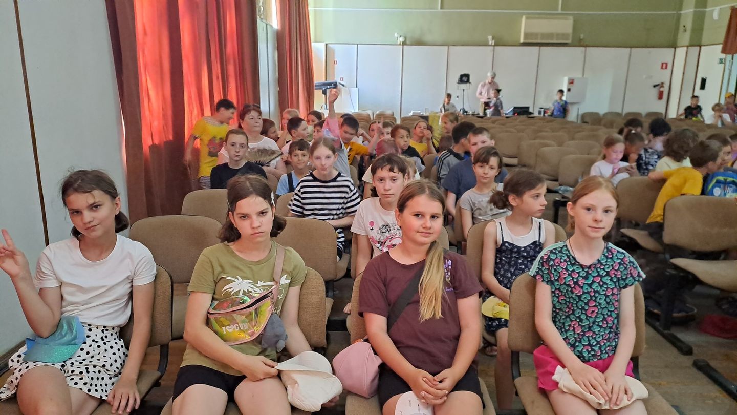 Ребята лагеря стали участниками игровой программы "Путешествие по Крыму с Крымушей»", который проводился в Феодосийском ДК.
