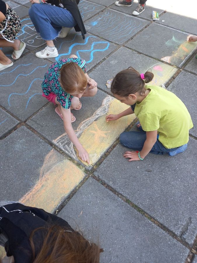 Ребята, как волшебники превратили серую асфальтную площадь в сказочный мир своими удивительными рисунками. Они с удовольствием старались отразить все краски лета. Для этого дети использовали яркие мелки, которые помогли им отразить задуманное. Настроение у всех было приподнятое, радостное и солнечное.