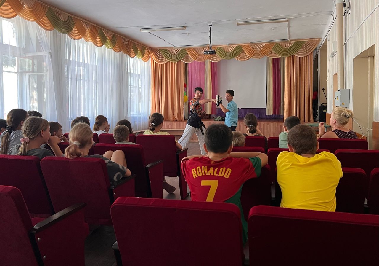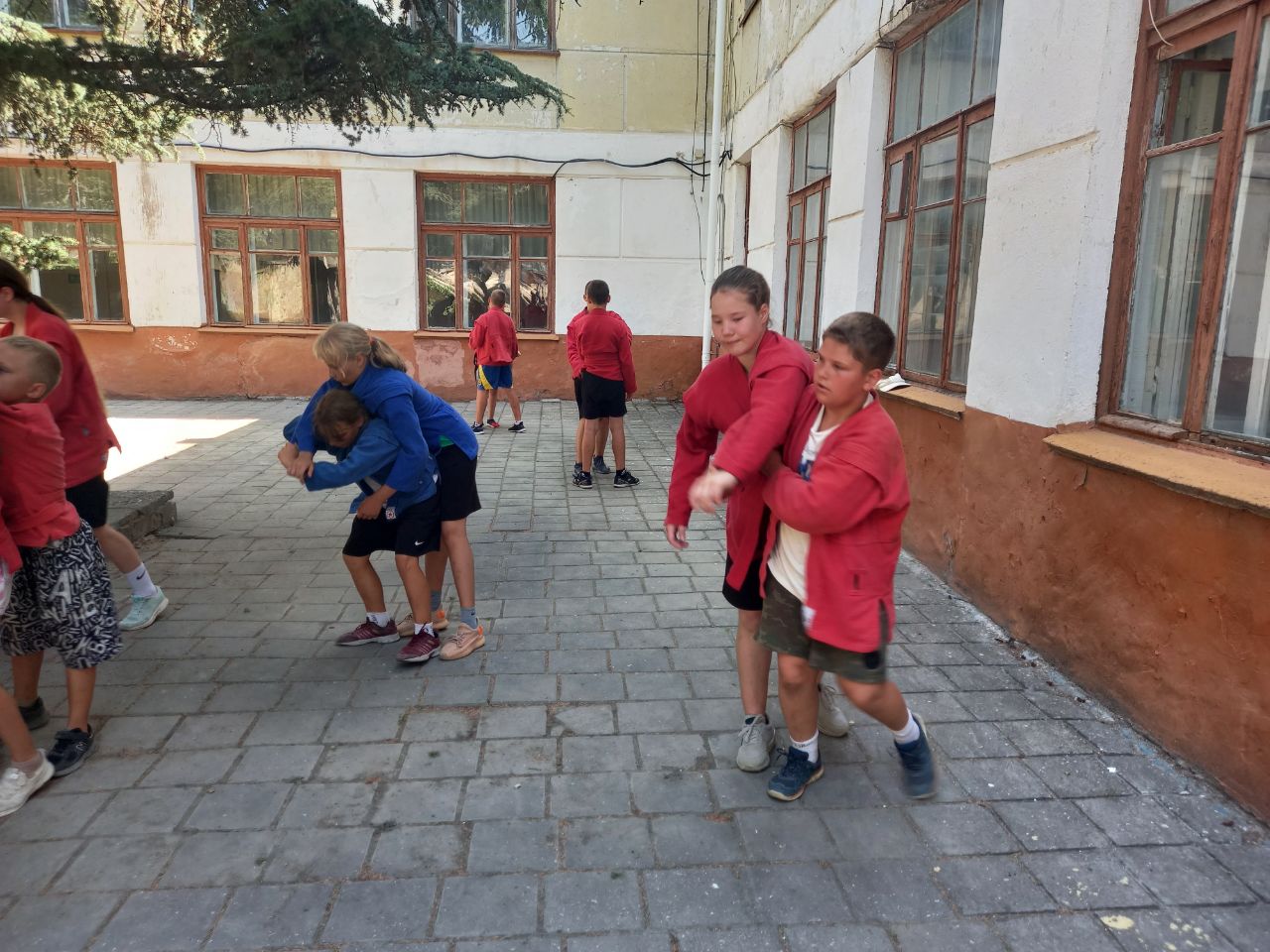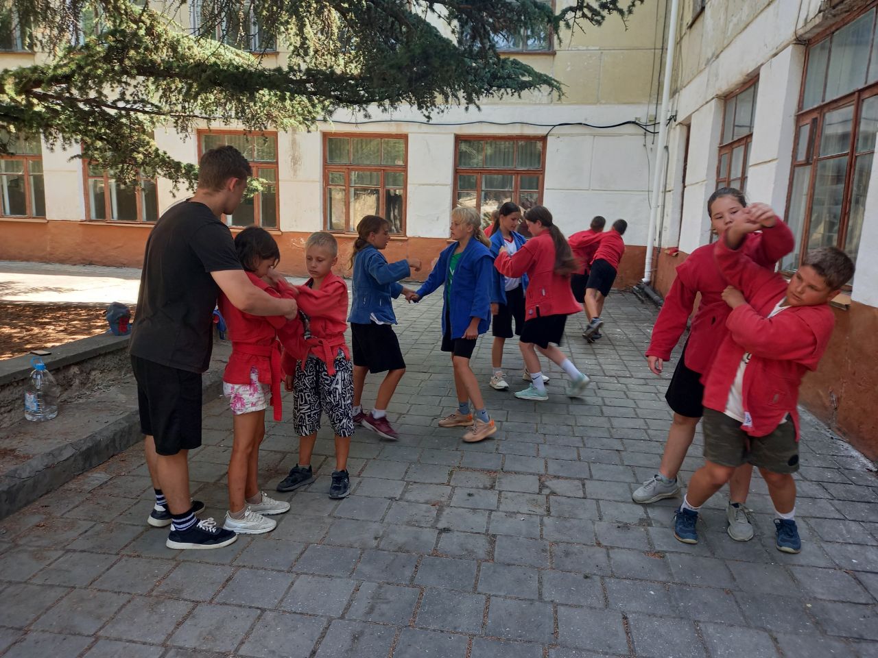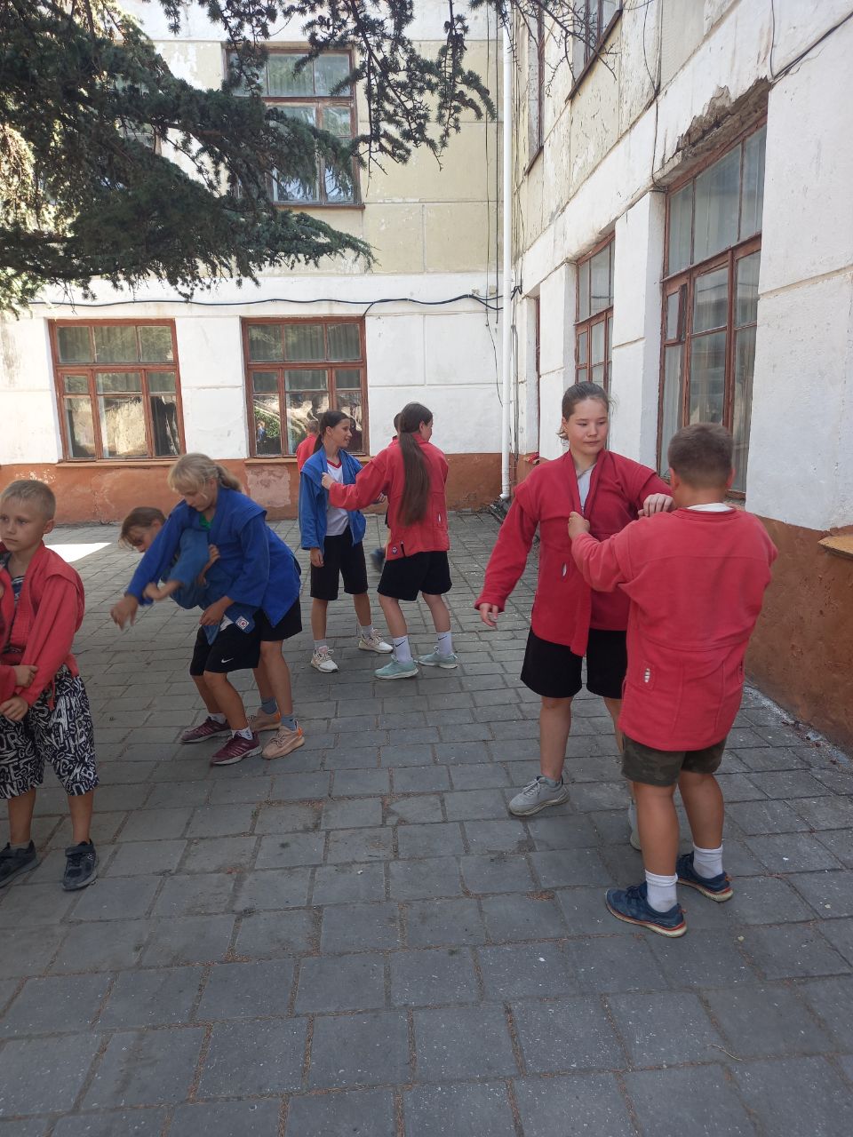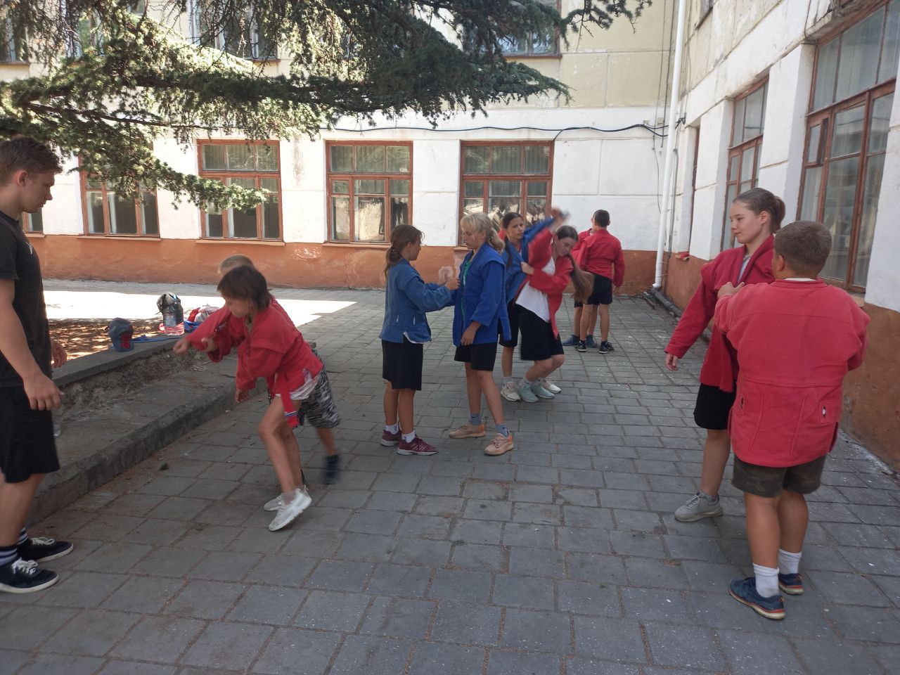 Ребята с большим интересом занимались на занятии по тхеквандо, приняли участие в разминке по самбо. В этот день прошли соревнования по футболу между 3 и 4 отрядами, а также ребята посоревновались в спортивной эстафете «Молодецкие забавы», которую провели волонтёры Молодежного совета г. Феодосии.